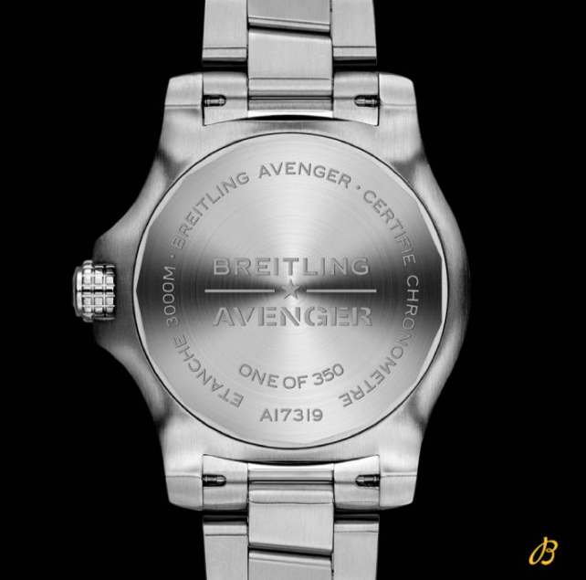 Driving the Breitling Avenger Automatic 45 Seawolf watch is the familiar Breitling 17 automatic winding calibre, the very same which fuels the other time-and-date models in the Avenger collection. We’re promised to 26 jewels, a frequency of 28,800 vibrations per hour, a 38 hour power reserve and, as with every Breitling watch, the in-house movement is COSC certified for its impressive levels of accuracy.