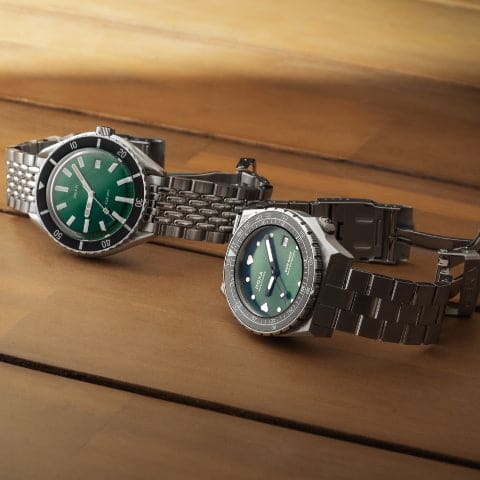 Damascus steel is a material that was first used for swords and knives. These weapons and tools were characterised by their toughness and sharpness. They had attractive surface patterns that caught the eye, so they weren’t just functional, but aesthetically beautiful too. So, what does this material have to do with watches you ask? Well, pattern welded Damascus steel is forged using alternating sheets of high carbon and low carbon steel. The metalworking processes that create these many layers give Damascus steel its distinctive appearance. Pair these attractive surface patterns with toughness, and this suddenly makes for a unique recipe for a watch case.