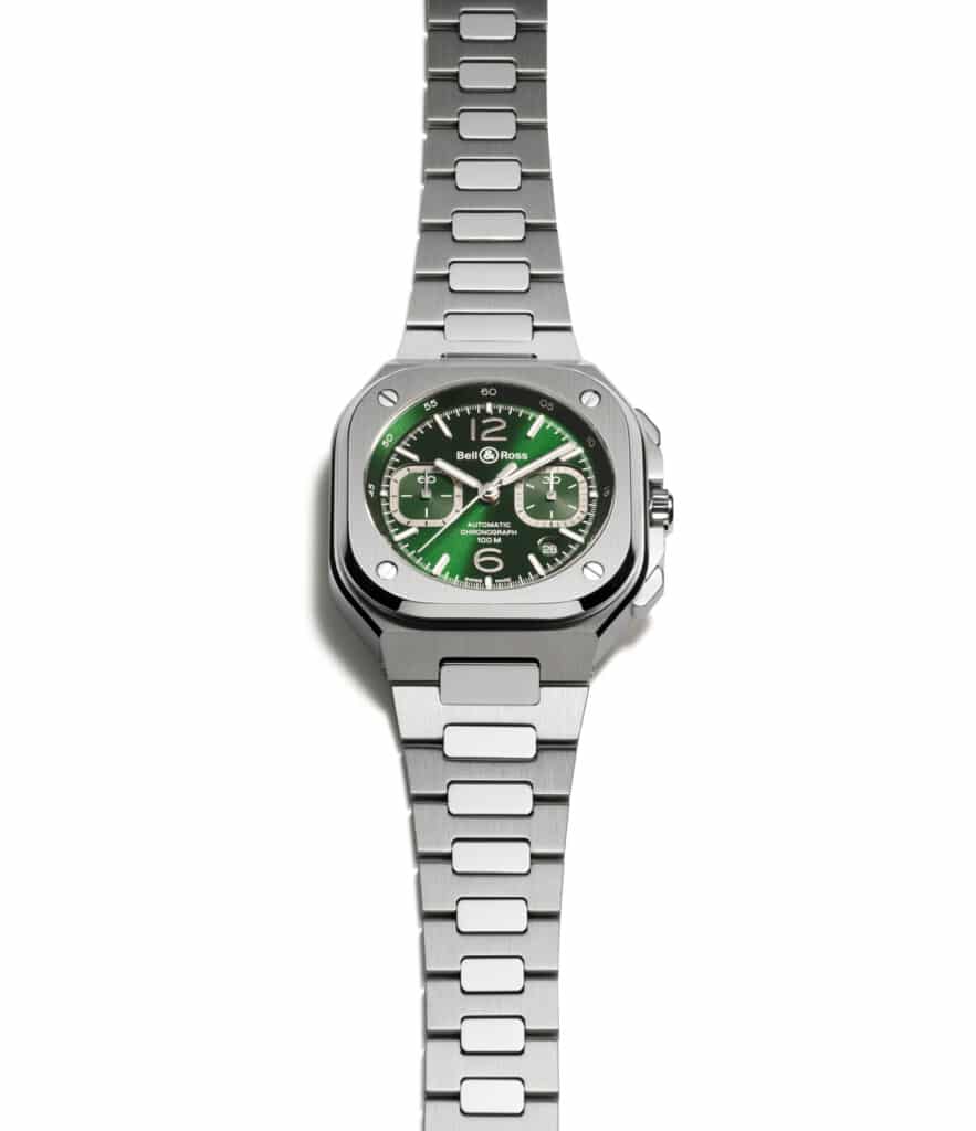 You’ll typically find Swiss watchmaker Bell & Ross somewhere between the sky and the sea. Their sporty diver’s watches provide optimal functionality for underwater exploration while their long-established aviation heritage has secured them as one of the world’s leading pilot’s watch manufacturers. Their Bell & Ross BR 05 watch collection, however, meets in the middle, delivering sophisticated integrated architecture for urban explorations. The new Bell & Ross BR 05 Chrono Green Steel watch celebrates having both feet firmly on the ground with a new nature-inspired green sunray display.