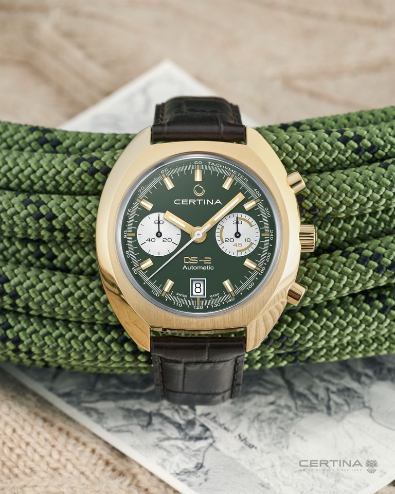 The original Certina DS-2 watch launched back in 1968 and utilised their coveted Double Security (DS) technology for shock, dust and a 200 metre water resistance alongside handsome dials with three-hand displays or chronograph complications. Then at the very beginning of the 1970’s, Certina launched a line of chronographs with high-grade manual movements called the DS-2 Chronolympic. To prove their durability, the chronographs accompanied a team of Japanese adventurers as they climbed the highest peak in the world. On the way down, one of the team, Yuichiro Miura, famously skied 2,000 metres down the mountain, reaching speeds of up to 160 km/h, slowed only by using a parachute. He did this all while having the Certina DS-2 Chronolympic strapped to his wrist, once again endorsing the collection as a reliable companion for all environments.