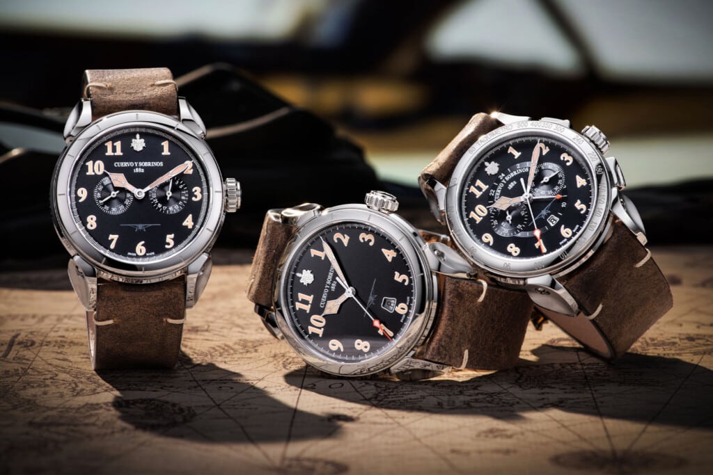 Havana-based watchmaker Cuervo y Sobrinos often looks to the past for inspiration when creating new releases, and their popular Vuelo collection is no different. “Vuelo” meaning “flight” in Spanish denotes the company’s passion for aviation with each of the contemporary, Latin-imbued timepieces bringing to life the aesthetics of pilot watches from the early 20th century. For the collection’s latest instalment, Cuervo y Sobrinos chooses to celebrate famous aviator Emilio Carranza and his significant contributions to Mexican aviation. The designs are suitably named the Cuervo y Sobrinos Vuelo Emilio Carranza watches and include a simple time-and-date model, a bi-compax calendar timepiece and a GMT chronograph.
