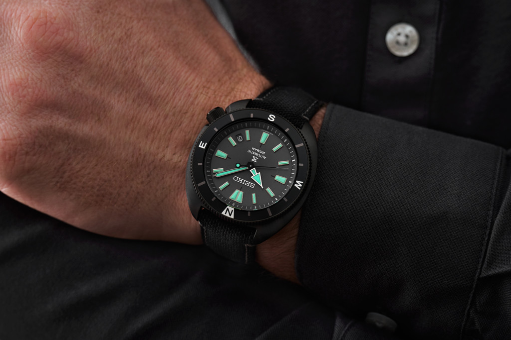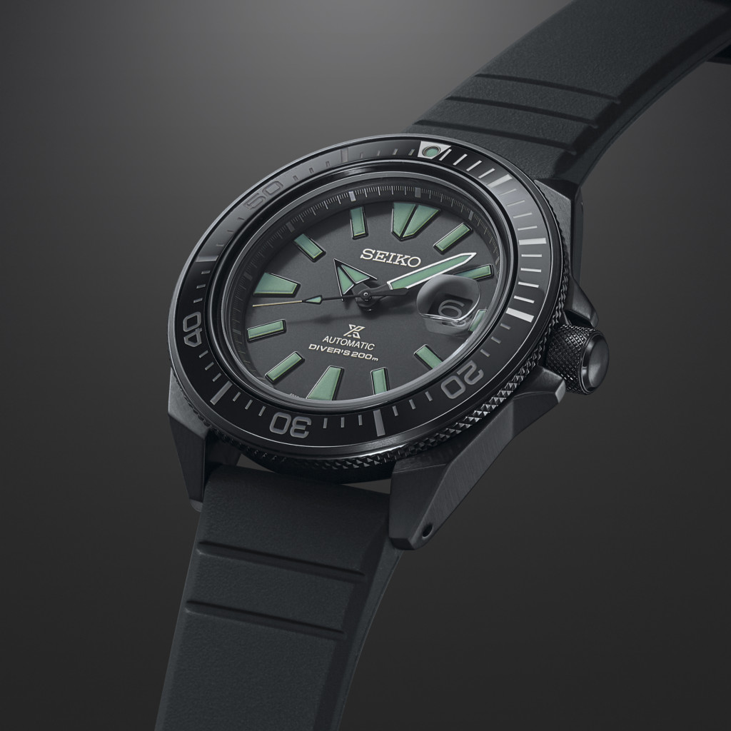 The Seiko Prospex Black Series has been around for several years now and it still remains one of the most highly collectible collections in the Japanese watch brand’s portfolio. The premise is simple; Seiko typically takes three of their popular dive references, like the Monster, Tuna and Samurai seen in last year’s Black Series line-up, and coats the stainless steel base with a black coating. On top, a black bezel and dark dial is added alongside bright colour accents on the dial’s hardware and plenty of lume for readability. The result is spectacular, especially is you’re a lover of all-black watches like us, and stands to commemorate the world of night diving. The same visuals are brought to life yet again in the new Seiko Prospex Black Series ‘Night Vision’ watches which includes the King Samurai SRPH97K1, Tortoise SRPH99K1 and a solar-powered model under SNE587P1.