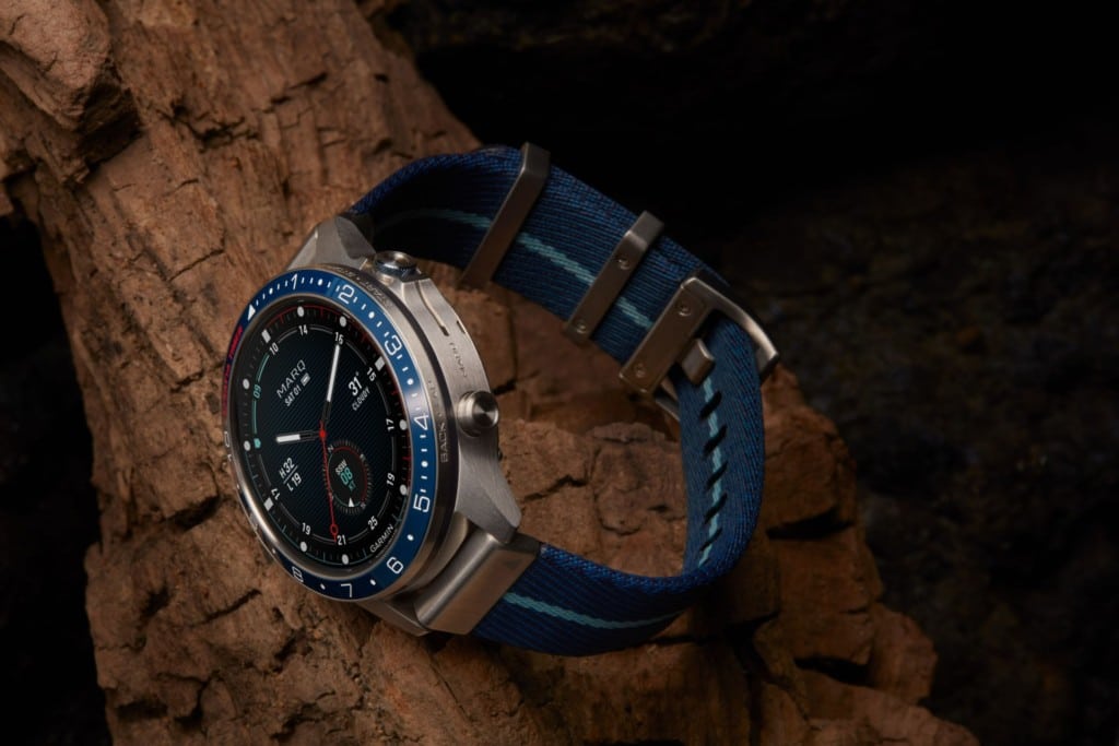 A huge headline for the new Garmin MARQ 2 Captain watch is the introduction of the AMOLED touchscreen display. This follows the launch of the EPIX 2 earlier this year which also employed the crisp readability of AMOLED. Believe us when we say the 390 x 390 pixel resolution is a huge upgrade on the original MARQ Captain and it makes browsing the mass of features within effortless. The display is guarded by domed sapphire crystal glass and walled within a lightweight 46mm grade 5 titanium case. The case is then paired with a blue ceramic insert bezel decorated with Regatta timer markings and a nautical-inspired striped French jacquard-weave strap. As a marine GPS smartwatch, the Garmin MARQ 2 Captain obviously maintains its 100 metre water resistance.