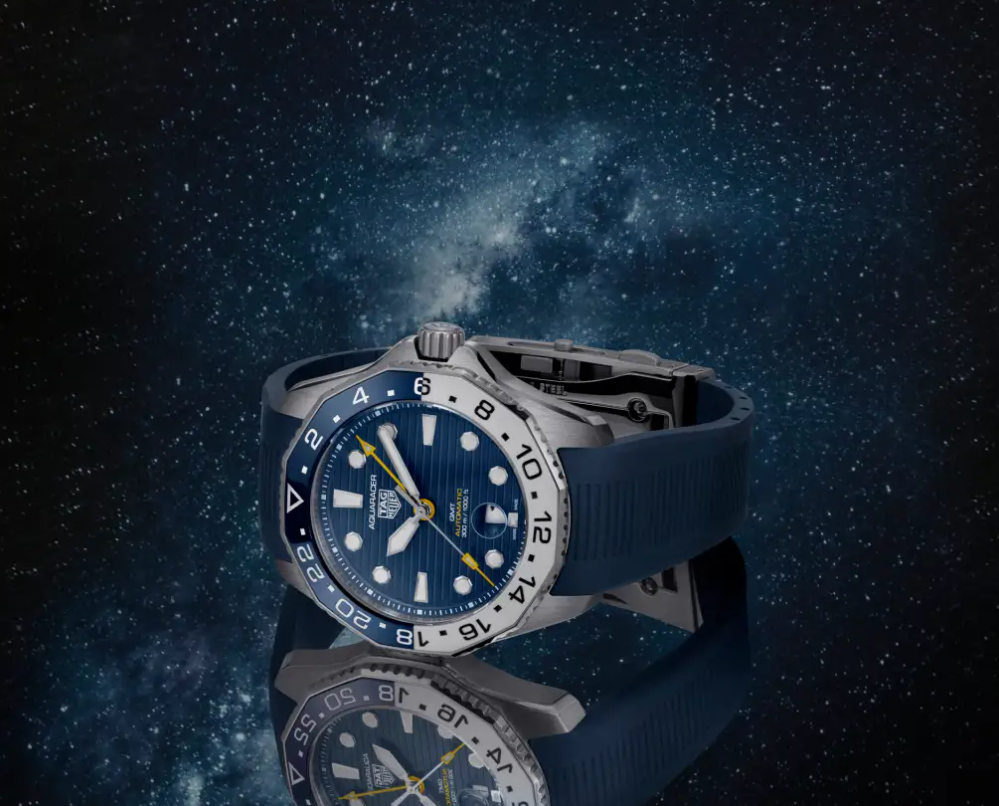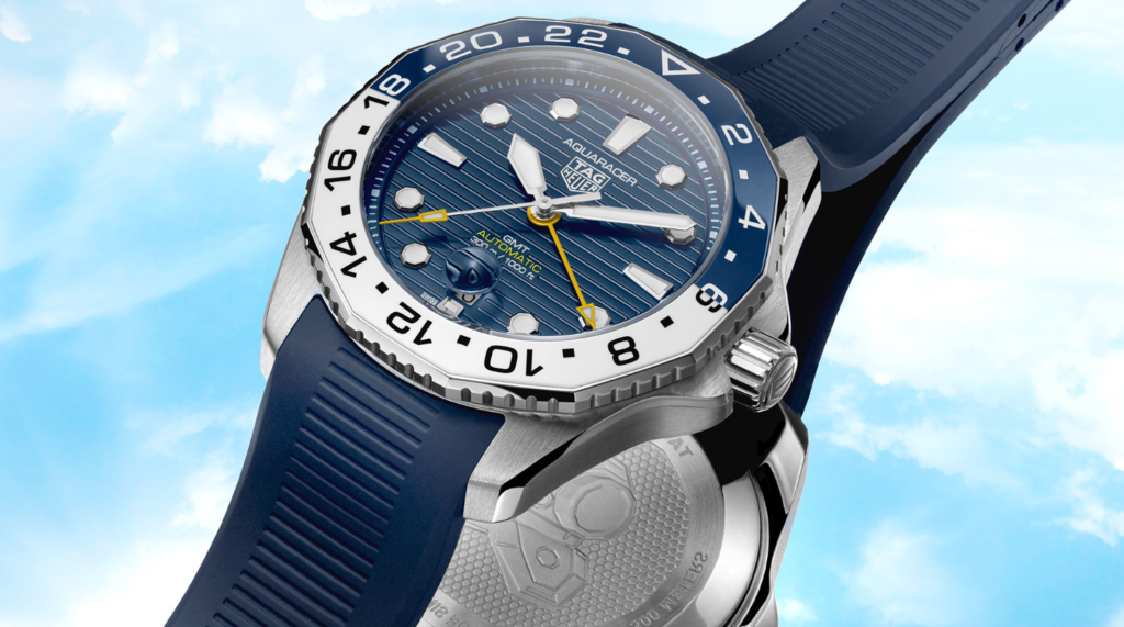 Following the success of the Professional 300 series launched last year, TAG Heuer unveils a bright and colourful GMT model for the wrists of globetrotters, marrying the Aquaracer’s six signature features with a vivid yellow GMT hand and a night-and-day bezel. Meet the new TAG Heuer Aquaracer Professional 300 GMT watch…