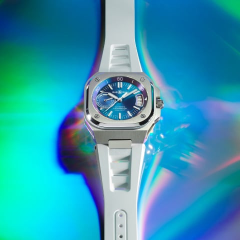 Bell & Ross BR X5 Blue LUM watch featuring a luminous blue case and dial with a titanium design.