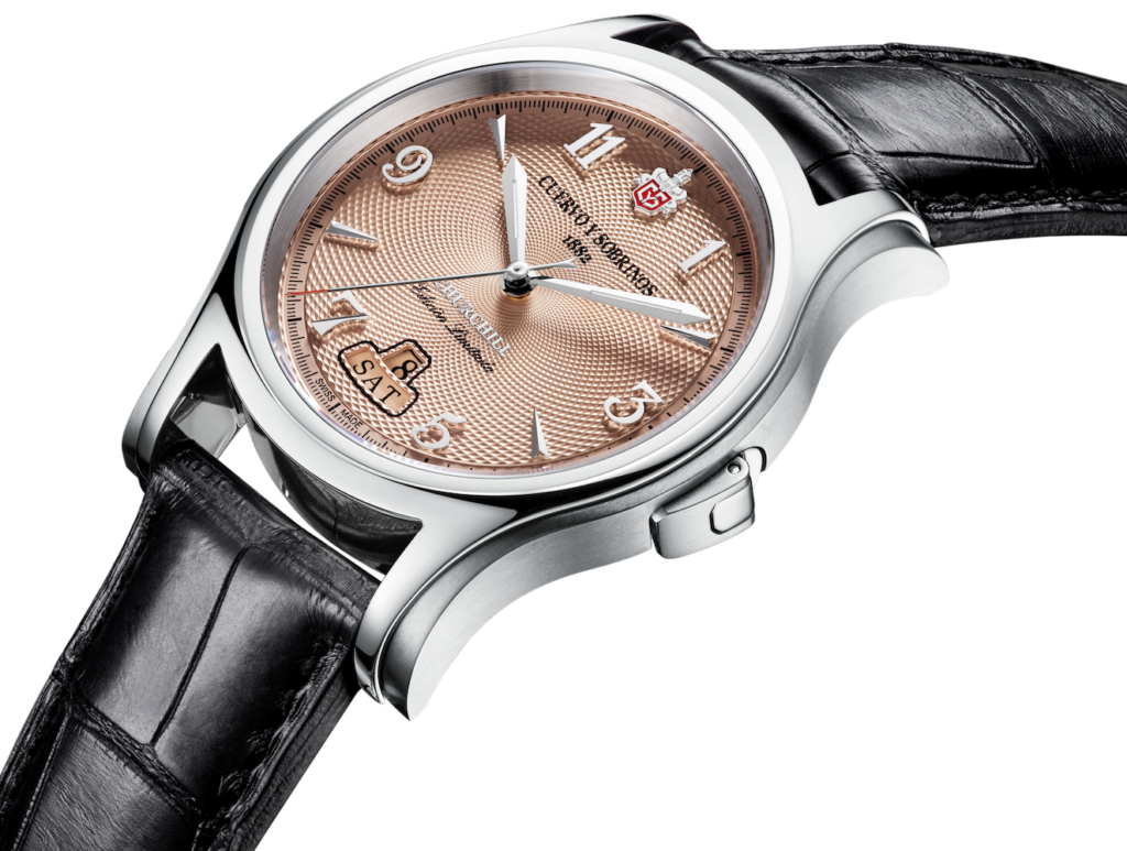 Cuervo y Sobrinos announce a new edition of their Robust Churchill watch with a salmon guilloche dial inspired by the warmth and vibrance of Havana, the Cuban capital the luxury watch brand call home. The new Cuervo y Sobrinos Robusto Churchill Day Date is limited to just 30 pieces and has been launched exclusively with luxury watch and jewellery retailer C W Sellors Jura Watches.